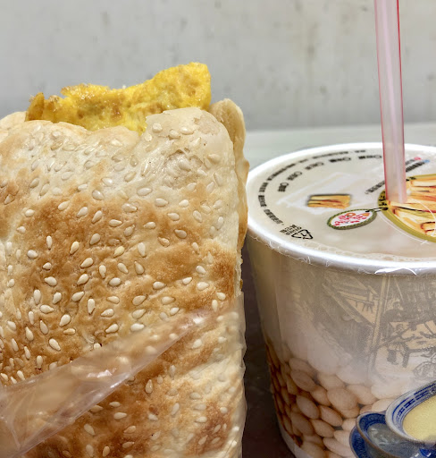 A busy Taiwanese place serving soymilk, freshly made and fried before your eyes you tiao (fried crullers), lobak(radish cake) & misc typical Taiwanese bfast fare. Popular among locals, no frills place with limited seating in a claustrophobic room at the back. We ordered a variety to go: steam pork bun, meejiang (only served sweetened thick brownish drink) scrambled eggs w dough, really didnt know the names, just ordered by pointing lol. W Everything was freshly made, and pretty good. Not a fan of the meejiang drink & the thick sticky rice rolled with a fried cruller but every thing else was good. Service is pretty standard at these places- brusque, no nonsense , fast paced so know what you want before...