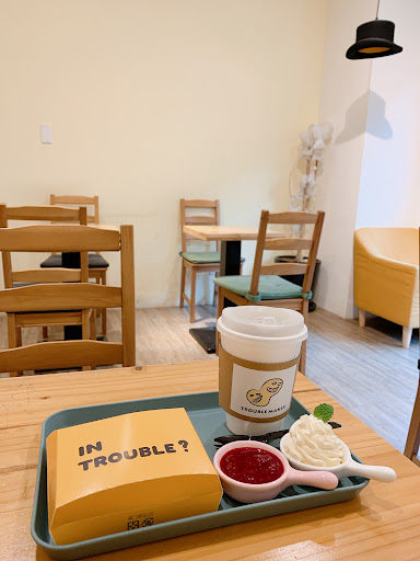 I give this place 3.5 stars. First, the coffee - not bad, but nothing special. My standards are that if a place has one of those high-end Italian machines with the milk steamer and everything, their espresso-based beverages should be at least as good as what is served at Louisa, Cama, 85c, and the other chains throughout Taipei. Unfortunately, this isn't the case at Trouble Maker - the coffee is just OK. I don't know why that is - perhaps the beans? The place itself is pleasant in an IKEA sort of way - clean but more sterile than warm, which is another way of saying there's not a lot of character. Great waffles, though! Prices are a bit high. Service is pleasant but not particularly engaging. Also, I find it weird - and this is more of a general Taipei complaint because it's a common thing here - that you have to order at the counter, pay, and then they bring the stuff to your table. At Trouble Maker, this means you go in, walk upstairs to see if there is a table, claim it, go back downstairs to order/pay, and then walk back up the stairs to your table. So that's two trips up the same set of stairs just to get a cup of coffee. There's gotta be...