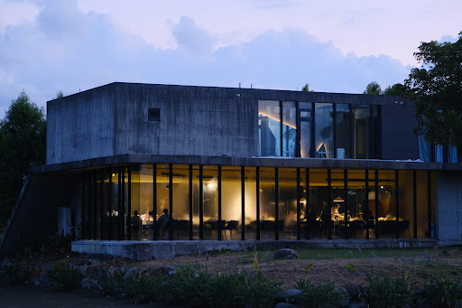 穿過林蔭小徑後,映入眼簾的是帶有大面落地窗的清水模建築,面向豐收季節的限定金黃稻田景觀,讓人想快步穿越石子路,直達窗旁享用美食佐美景。這裡一年四季都有不同的稻田景觀,尤其到了稻穗採收的季節金黃色一片,像張柔軟的地毯讓人徜徉其中。