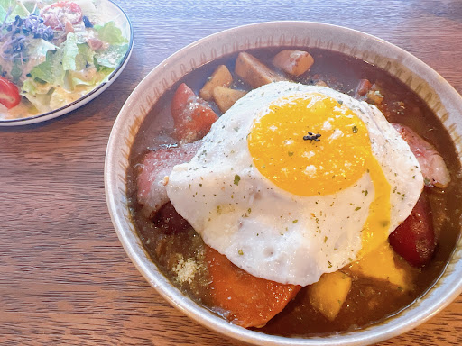 ✿蘋果肉桂招牌咖哩 NT$300 👍 | Apple Cinnamon Curry ➻附凱薩沙拉/油醋沙拉 這次選凱薩沙拉,醬料調味不錯,能感覺到店家用心~ ➻咖啡 現磨咖啡豆很香,帶點果酸味,順口好喝~