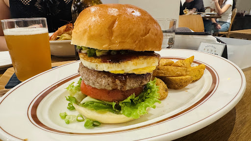 We came here for their burgers and snacks, drawn by their high-quality Japanese culture cafe vibe and strong reviews. The interior is bright, but tables are packed close together, and it was noisy during a fully booked lunch.