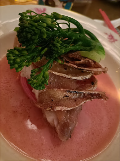 Our ( group of 8) dinner began at 7pm as scheduled. Our first course was interesting, we're so excited with catching up with each other , I wasn't really paying much attention to the ingredients, but the starter was flavourful and delicately prepared and presented. The dishes that followed were prepared with the same intensity of attention and passion. I couldn't speak Chinese too well so I couldn't ask about their food or their visions and passion. From what I've tasted - they were elevating traditional Taiwanese cuisine to a fine-dining level; for e.g. there's this mee-sua served with lightly seared chicken thigh in sesame oil served with beetroot broth. The flavour was delicate without being over powered by sesame oil.
