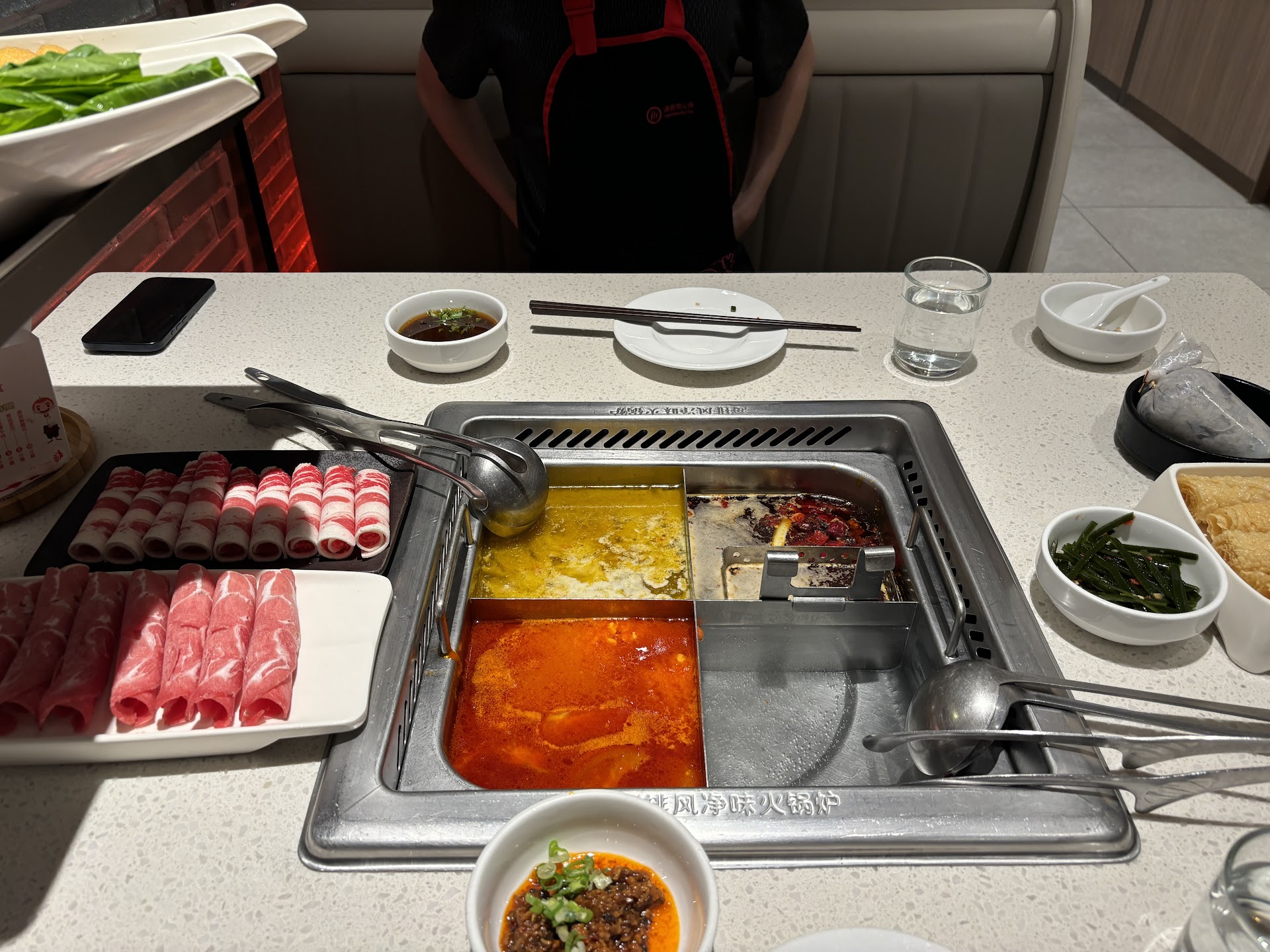 Read more⭐⭐⭐⭐⭐ (12/10 if I could!) Absolutely phenomenal solo hotpot experience! I went to the Breeze Nan Shan branch and was immediately welcomed with the warmest service. A friendly English-speaking staff member walked me through everything — from how to order to explaining the broths, sauces, and sides. As a solo diner, they even brought me a cute stuffed panda plushie to accompany me — such a sweet touch! I chose Classic beef Mala and Collagen Broth with pork intestine and both were rich, flavorful, and comforting. The ingredients were impressively fresh — the meats were super tender and flavorful, and the vegetables were incredibly crisp. 12/10 for quality and freshness! For just NT$50, you get unlimited side dishes, fruits, and Häagen-Dazs ice cream — yes, you read that right. The entire meal, including premium meat cuts and all sides, came to NT$1590, and I felt it was worth every cent. This is more than just dinner — it’s an experience. Perfect for solo travelers, families, or groups. Definitely...