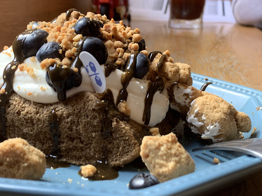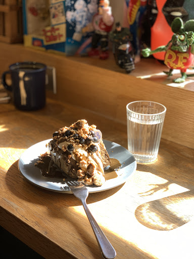 Read more不錯的咖啡 可以做一點工作,但週末很熱鬧 Not a bad place to do some work, but is very busy and noisy on weekends. They also do a lot of takeout orders (including whole cakes), so may take some time to fill your dine-in order (I had to even explicitly remind them since they forgot part of my order). The blueberry hojicha with ganache cake looks more fun than it actually tastes, but was fine for a chiffon cake (loaded with cream, cookie chunks, some fruit and drizzle of sauce). WiFi: 5 down / 25 up Outlets:...