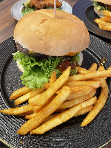 Read moreThey offer a pleasant American dinner in an Asian scale. You can see how the owner put up memorabilia that you would experience in the states. The service is up to standard but not super. They have a full menu. I tried the basic burger. The presentation is pretty nice. But the burger patty is mixed with something else to make it a bit more chewy could be eggs or starch. It is not as beefy or juicy that I would like it to be. The burger sauce is a localized BBQ sauce which is not as sweet, strong and pungent. The cheese cake must be from a manufacturer frozen source. The price is reasonable and overall a pleasant place. However it is not a place I will come back...