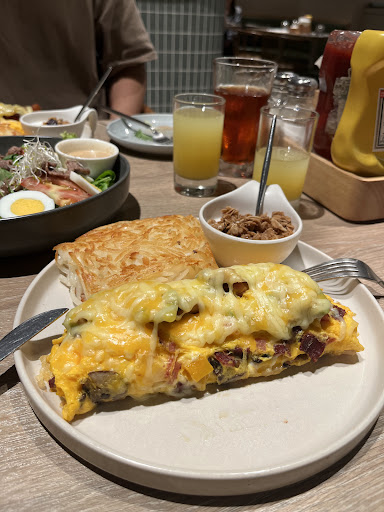 Read moreFinally tried this restaurant, and I’ve been craving it for a long time. I ordered M one deluxe omelet, the proportion is quite a full filling and it tastes really good. There was lots of stuffing inside of the omelet, and the cheese and well-baked bacon spiced up everything! The surprising thing is that even though the ingredients are simple, everything tasted so good, especially the hash browns, the crispy layer of the potatoes is astonishing! The waiters are super nice, they gave me well-packed boxes for my takeaway. It’s a decent place to dine in, the atmosphere is nice and cozy, highly...