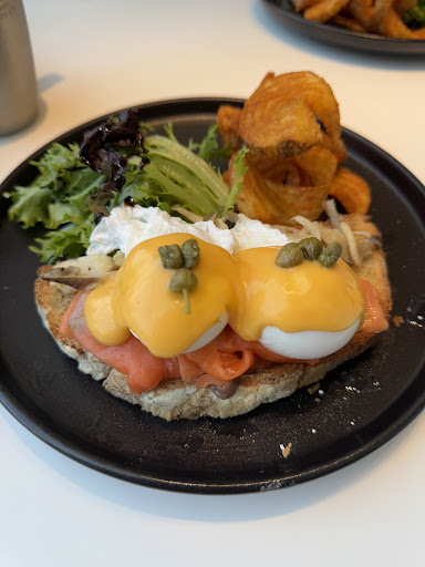 An amazing brunch restaurant on the 7th floor of Breeze Nanshan 🙂. The atmosphere and the service was a total 10/10. If you are able to snag a table next to a window, you’ll get an amazing view of Taipei 101. My family and I sat down without a reservation right when they opened at 11AM. Breeze Nanshan does not allow guests inside of the building until 11AM, so if you arrive a bit earlier you may have to stand outside of the mall until 11. To my knowledge, the 7th floor is easily accessible by elevator and not so accessible by escalator, so make your way into the mall and ask for directions / look for signage that indicate where the elevators are. I got a smoked salmon benedict! This brunch item comes with 2 drinks (one juice and one refillable coffee or tea). The amount of food served is perfect, but I’d have to say the taste is subpar. It’s not terrible by any means, it is tasty! I just had higher expectations for this establishment as their reservations were completely booked for the morning I went in. However, I did see lots of folks ordering their pastas and their other non-brunch items. I wish I was able to give those a try, as they might have been better than my meal. I felt like the smoked salmon had a very odd aftertaste to it, and the sauce they use on the salad is a type of balsamic that I am not the biggest fan of. The odd taste from the smoked salmon transferred over to the bread and the eggs, so I kind of got that weird taste all over my meal. I love smoked salmon, and I’m aware that at times it could have a super fish-y taste to it but this aftertaste was a bit weird and it honestly made it difficult for me to finish the meal. However, the fries were good and the toast was also very good, so overall a very great meal. If you’re looking for a place to eat and catch up with a friend, highly recommend this specific location as their view is unbeatable. I definitely would love to revisit this establishment and order some of their other...