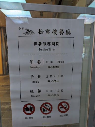 Read more今日走合歡山東峰,晚餐在松雪樓用中式自助餐,原本一人300元,聽說是換廚師,菜色較豐富,每人調漲了50元,變成350元,原本蠻期待這一餐,畢竟白天花了不少卡路里,只是結果有點大失所望。