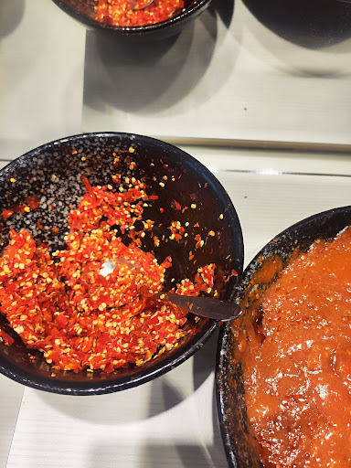 菜單選擇多元,無論是愛吃肉、喜歡海鮮,還是偏好蔬菜的人,都能找到合適的鍋底與食材。我們這次點了麻辣鍋搭配昆布鍋,麻辣鍋的湯底香而不死鹹,辣度帶勁卻不嗆喉,喝起來順口;昆布鍋則清爽鮮甜,煮青菜、海鮮特別對味。店家的湯底顯然是用心熬煮的,不是那種隨便調粉的味道,越煮越香,讓人一直想加湯。