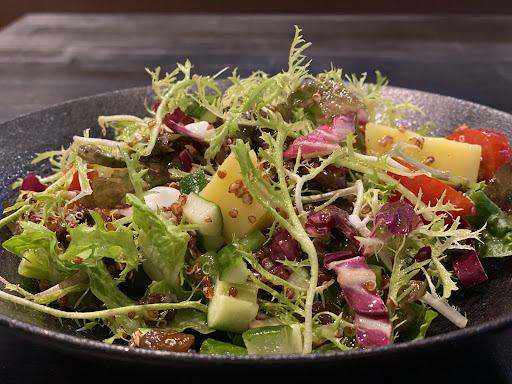🥘沙拉 這份量其實不算小 蔬菜選用小農蔬菜很新鮮 搭配油醋醬酸香很開胃不會過激