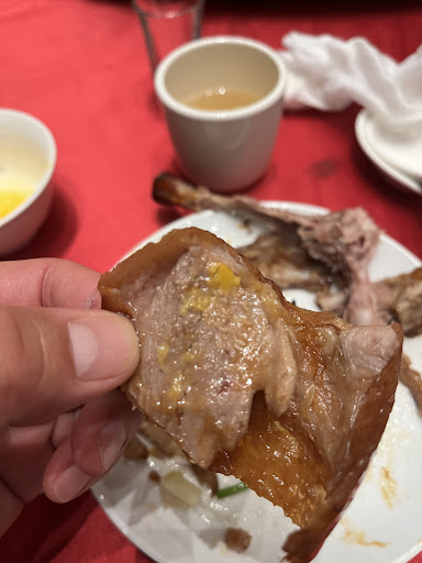 It was a meal I was really looking forward to, but it turned out to be rather disappointing. First of all, the service attitude was strange. We didn’t cause any trouble, but from the moment we sat down, one of the staff members seemed very impatient. The drink was wrong, and when we pointed it out, they just took it away without saying a word (Is this the standard one would expect from a high level restaurant like this?). They didn’t need to apologize, but at least they could’ve told us they would bring the correct one soon. The first few appetizers were quite average: boiled asparagus, braised beef, sweet-soured cherry tomatoes (this was good), boiled squid (or cuttlefish, I can’t remember), pumpkin, and Shaoxing chicken (this was also good). Everything else was pretty average, except for the dishes I mentioned as good. The braised duck wings were very flavorful, mildly spicy, and delicious. The cherry duck sushi was okay to try once, but the skin was crispy yet greasy, and the overall flavor didn’t quite match, though I can’t quite pinpoint what the issue was. The scallion pancake with duck was served a bit cold, and the skin wasn’t as crispy as I expected, which made it a bit chewy. If it were served hot and crispy, I’m sure it would have been much better (just imagining). The green dumpling with duck and scallion was decent. The duck breast and duck leg were very tasty—the meat was tender and juicy. The duck meat fried rice was a bit lacking in wok-hei (the high-heat stir-frying taste), but the duck flavor was well-incorporated into the rice. My favorite dish was the "Summer Sakura"—the flavor was just right, not too strong or overwhelming, and it was refreshing. I could eat 10 plates of this! The napa cabbage and duck soup was too greasy… I think better took it home, diluted it, and it might actually taste better as a noodle broth. The mung bean cake was delicious—flavored with salted egg yolk, which I really liked. The duck oil(fat) dressed cabbage was also decent. Since I’m a big fan of roast duck, I think I won’t come back in...