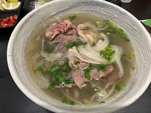 Nous avons pris à emporter ce soir pour trois personnes, deux Pho (boeuf et fruit de mer) et un BoBun au porc. Le constat est le même pour les trois plats, dans l'ensemble plutôt bon, mais un peu trop petite quantité et pas assez de viande à mon goût pour le prix proposé. Un peu plus d'accompagnements dans le bobun ( soja, cacahuètes, friture... ) n'auraient pas été superflues. Meilleur avis sur les Pho, bouillon un peu léger, là encore le plat manque un peu de viande.
