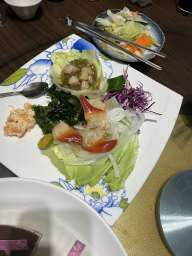 從頭到尾口氣不佳,服務的過程也普普,菜…我只能說,主打日式料理,但卻把花壽司跟油飯放在同個容器裡?再來是鮑魚配的是美生菜沙拉?