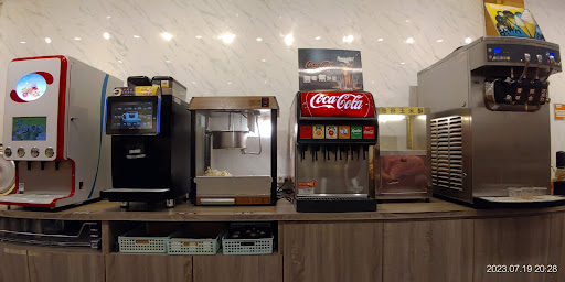 4.供應副食:由店內到外,如附圖 (1)杜老爺冰淇淋:共有六桶,及甜筒,上方有冰淇淋勺、小湯匙,及高湯底。 (2)水果汁機:蔓越莓汁、芭樂汁、蜂蜜檸檬汁、楊桃汁。 (3)綜合咖啡機 (4)爆米花 (5)飲料機 (6)海苔玉米酥 (7)霜淇淋機:香草、綜合(香草巧克力)、巧克力 (8)佐料區 (9)餐具區:除此區有,位於上列,及下列機台下方抽屜拉出也有。 (10)綜合咖啡機 (11)冰沙機 (12)飲料機 (13)旋轉飲料機 (14)油蔥酥醬料:完全無肉,可自行淋於飯上。 (15)白飯 (16)明治冰淇淋:共有六桶,及甜筒,上方有冰淇淋勺、小湯匙,及高湯底。
