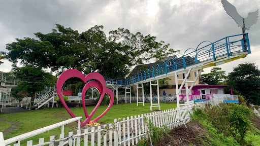 整個餐廳的座位不少、約250席以上 (有二人座、四人座、多人座位) 分置為室內與戶外桌次可擇 天氣炎熱時可坐室內 舒適涼爽 而粉紅浪漫區內還有一隅為親子遊樂區 是小朋友的最愛 內設有球池、溜滑梯、跳跳床、小小車、投球機....遊樂設施 可供孩童盡情遊玩嬉戲 而空間更大的戶外座位區 可欣賞視野遼闊、一覽無遺的龜山島與蘭陽平原 坐上盪鞦韆、搖搖椅餐位 輕鬆、放空、談天說笑 爬上許願樹許下心願(許願卡可至櫃台索取) 拍攝樹上潔白的愛之小樹屋 裏頭還有床 真可玩不錯的扮家家酒 走玻璃所製的天空步道 留下美麗的天使羽翼倩影 只惟若下過雨 走步道時需小心行走、地易滑