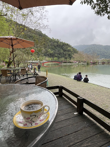 Read more面對湖畔的古厝咖啡館,有室內座位,也有戶外的傘座區,為了欣賞湖畔美景,我們當然坐湖畔旁的傘座區囉!