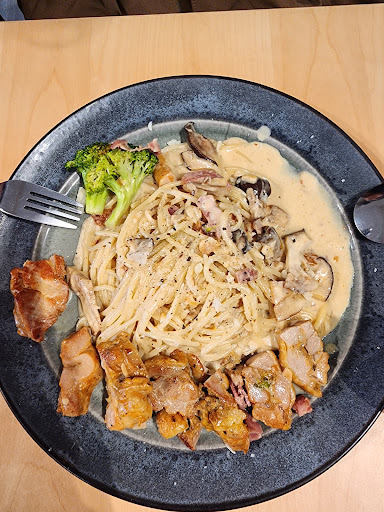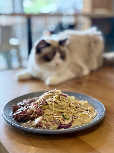 Stumbled upon this place when we were exploring Sun Moon Lake. What intrigued us was the high reviews and the amount of people who liked it. Atmosphere: There are lots of cats. If you have cat allergies, please beware. On the flip side, if you are a cat lover, don’t miss this opportunity to pet some cats for some cat-friendly therapy. Also, I would say there is a slight smell, but that is only at the back where they do their business, and that’s where the washroom is located. Overall, the atmosphere, I would give it an 8/10. Food: We ordered two pastas on the menu. They’re called Garlic Spicy Crab Sauce Shrimp and Balsamic Vinegar Cream Sauce Beef. The first was what the owner recommended, and it was delicious. The latter, not so much. Though the title said it was spicy, I would say it was very mild, but it’s garlicky, and the flavorful shrimp is very tender. The latter of the two was okay. It didn’t wow us. The vinegar part wasn’t overpowering. The sauce was very creamy, but of the two, I would choose the spicy crab sauce one. In both instances, the pasta was cooked perfectly, not al dente but on the soft side. Food: 9/10 Price: For the two items, it came to 580 NTD. For the area, it is quite on the expensive side, but we got to pet the cats, so I would give it 7/10 for value. Service: The owner was nice and very caring. He gave a welcoming attitude. The food came out pretty quickly. Would give service a 9/10. Overall: The atmosphere, food, and service were what stood out to us. Though the price is on the high side for the area, I would definitely come again for another visit to see the cats and...