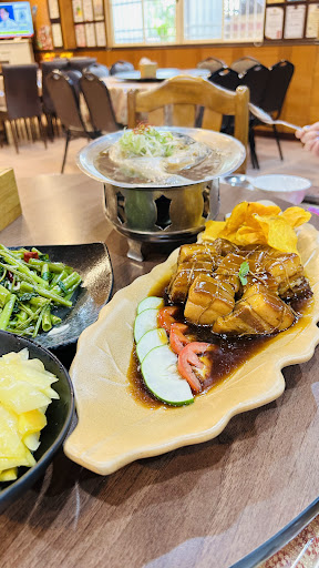 I ate a weekday night (not a holiday), and we 2 persons were the only ones in the restaurant, so service was quick. I take note that this is a family-owned restaurant, and service was done by what I assume is the young daughter of the owner/chef. So they want you to take yourself any drink from the fridge, and not to call the service to do it for you. I ordered the pork Dongpuo, seafood tofu, and a fried vegetable plate. The food was nicely presented, taste was fine, and portions were so generous we could not finish (I expected the Dongpuo to be smaller than it was). I think it was on the slightly expensive side (940 for 2, no drink), but I was satisfied nonetheless knowing there is not so many alternatives on the Shuishe side of the Sun Moon Lake when...