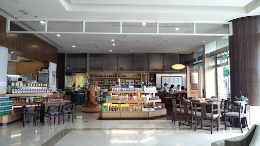 It does have a lovely sitting area with a view of the lake. There are lots of tea leaves selection with...