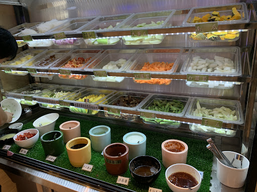 鍋物湯頭較為清淡 有蔬菜吧可以自行取用想吃的蔬菜水果 蔬果都很新鮮 種類也算多 有紫洋蔥🤩 也有白飯跟滷汁自由取用 醬料區也有多樣醬料佐料可以使用 可以吃得蠻飽的 再來自助加湯區是原湯 不會因為加湯後鍋物味道就變了