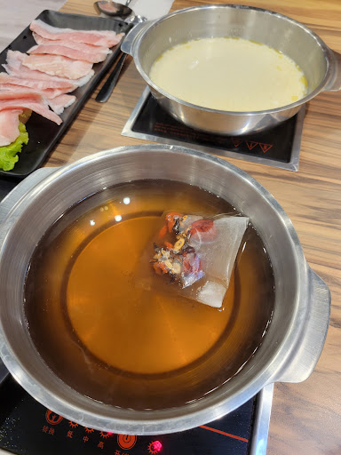 點了藥膳湯底,裡面放了個小藥膳包,覺得味道不算濃厚 朋友點了牛奶鍋底,覺得少一味,再加點起司多點鹹香會好喝多 梅花豬肉盤和松阪豬肉盤比起來,覺得松阪豬超值些,肉片厚,份量也較多