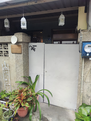 不加粉飾的傳統圍牆,抿石子滾邊的牆面旁爬著一隻造型生動的壁虎,簡單的金屬窗格、素雅的木門,讓人不禁有尋幽訪勝的錯覺。小小的店面座位數約10個,還有吧台區可親眼見識料理的過程、品味小廚房慢工細磨的完美傑作。