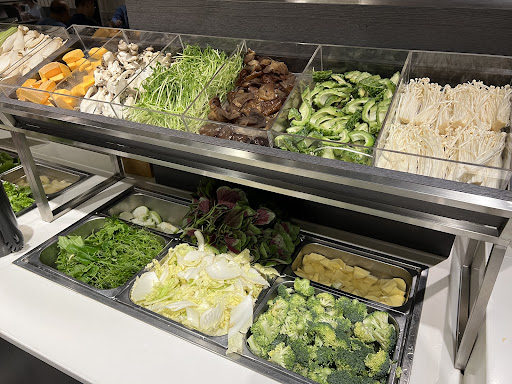 🥬自助吧:很讚 •加工品很少,沒有濫竽充數的火鍋料。 •蔬菜新鮮又多樣,重點是品質好又洗得很乾淨!高麗/大白/青江/青花/龍鬚菜、金針/杏鮑/鴻喜/香菇、南/地/苦/絲瓜、玉米⋯等。 •澱粉區有烏龍冷麵(川燙過更好吃)、野菇炊飯、油條、豆皮、泡麵、生細麵條。
