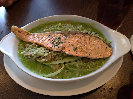 Read more彰化cp值很高的早午餐店(但是連晚上都有營業喔!),店內餐點幾乎都不超過200,而且內用的空間及服務態度都很好,餐點也都是現點現做,覺得非常感人! 今天跟媽媽一起去,點了兩份餐(有分超值午晚餐跟超值早午餐,燉飯是午晚餐,附餐比較豐富,早午餐則是有脆薯跟飲料)),總共327元。媽媽點了青醬鮭魚燉飯,附餐有沙拉、濃湯、牛奶吐司,還有40元的飲料(有紅茶、檸檬紅茶、綠茶、美式咖啡可以選擇)。燉飯內青醬非常濃郁,還有超級多的蘑菇(超好吃),整份吃下來非常飽。另外要稱讚的就是檸檬紅茶喝起來是紅茶加上新鮮現擠的檸檬,超好喝! 我點的則是燻雞軟法,燻雞肉超級多塊又嫩,加上番茄醬、蜂蜜芥末醬以及美乃滋,裡頭還有豐富的生菜、番茄跟酸黃瓜,吃起來豐富、爽脆不膩口,軟法是有烤過的,建議可以一口咬,不然很難切XDD 薯條是現點現炸,上桌的時候還是熱的,另外如果想吃帶皮薯條也只要加10元喔!我的附餐飲料是點綠茶...