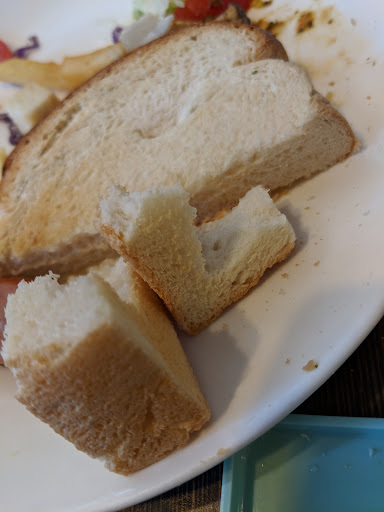 The bread was dry and crusty, we only wanted to ask for butter as my toddler was refusing to eat anything too dry. We even offered to buy a serving of whatever has butter/any type of sauce, we were declined and told "TOASTED BREAD MEANS NO SAUCE".