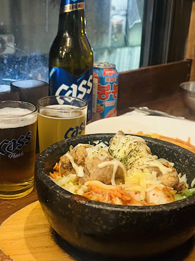 Read more⠀⠀⠀⠀⠀⠀⠀⠀ *🔸適合2-4人,賣石鍋拌飯、韓式海鮮湯、炸物、炸雞、酒、飲料的餐廳,店在二樓,一樓入口處較不明顯 ⠀⠀⠀⠀⠀⠀⠀⠀ *🔸生意超好,平日晚上去還有現場候位3-5組客人,全為高腳椅座位,但坐起來還算舒服 ⠀⠀⠀⠀⠀⠀⠀⠀ *🔸推薦點石鍋拌飯、大醬豆腐和奶油啤酒!建議跳過炸魷魚~ ⠀⠀⠀⠀⠀⠀⠀⠀ *📌牛五花石鍋拌飯💰$220 ⠀⠀⠀⠀⠀⠀⠀⠀ *🔸會給一顆生蛋,要自行打進石鍋中,我其實很少吃石鍋拌飯,因為不喜歡卡我牙縫的鍋巴和很乾很硬的米 ⠀⠀⠀⠀⠀⠀⠀⠀ *🔸結果!!這家的石鍋拌飯算很濕潤,米粒也不會太黏稠 ⠀⠀⠀⠀⠀⠀⠀⠀ *🔸石鍋的溫度算保溫很好,一上桌就開始忘情拍照,根本忘記要先打生蛋 ⠀⠀⠀⠀⠀⠀⠀⠀ *🔸後來過約5分鐘才想到要打蛋,雖然沒有熱鍋噗ㄘ噗ㄘ的聲音,但和其他配料攪拌後,生蛋還是有熟喔~ ⠀⠀⠀⠀⠀⠀⠀⠀ *🔸牛五花肉片油花部位不會過多,吃起來不會太油膩 ⠀⠀⠀⠀⠀⠀⠀⠀ *📌韓式海鮮湯💰$230(魷魚口味) ⠀⠀⠀⠀⠀⠀⠀⠀ *🔸海鮮湯會附一大碗尖尖的白飯和溫泉蛋,能選魷魚或蝦子口味 ⠀⠀⠀⠀⠀⠀⠀⠀ *🔸海鮮湯頭喝起來不會太嗆辣或鹹膩,能整碗喝光的程度,喜歡裡面很多洋蔥絲、青江菜和豆腐 ⠀⠀⠀⠀⠀⠀⠀⠀ *🔸尖尖量很多的白飯單吃會太硬太乾,感覺我能咬到米心,但淋上湯汁或搭配湯裡的配料們吃,口感會稍微好些 ⠀⠀⠀⠀⠀⠀⠀⠀ *🔸因兩道菜剛好各附溫泉蛋和生蛋,店家很貼心在某顆蛋上畫上表情符號來區隔喔~ ⠀⠀⠀⠀⠀⠀⠀⠀ *📌大醬豆腐💰$100 ⠀⠀⠀⠀⠀⠀⠀⠀ *🔸四塊炸豆腐,很像夜市會吃到的炸豆腐加上泡菜呢!蛋豆腐咬開,裡面是鵝黃色的雞蛋豆腐,外層炸皮也不會太厚 ⠀⠀⠀⠀⠀⠀⠀⠀ *🔸我朋友去過韓國玩,他吃一口泡菜後就說,這味道是正宗韓國超市賣的泡菜味啊~ ⠀⠀⠀⠀⠀⠀⠀⠀ *🔸無強烈的洽辣或死鹹的泡菜,搭配豆腐真的很搭!配奶油啤酒也超搭! ⠀⠀⠀⠀⠀⠀⠀⠀ *📌炸魷魚💰$140 ⠀⠀⠀⠀⠀⠀⠀⠀ *🔸很貼心有切成小塊方便入口,魷魚是不會炸過久而導致難咀嚼,有附小片的新鮮檸檬擠檸檬汁提味,但竟然吃起來完全無檸檬酸味, ⠀⠀⠀⠀⠀⠀⠀⠀ *🔸無液體的醬汁,僅有些細脆的香料,也可惜對於魷魚無加分效果,這就是一道炸。魷 。 魚 。 ⠀⠀⠀⠀⠀⠀⠀⠀ *📌奶油啤酒💰$120 ⠀⠀⠀⠀⠀⠀⠀⠀ *🔸超級無敵特別的口感!!我連喝好幾口都依時想不出具體的形容詞~ ⠀⠀⠀⠀⠀⠀⠀⠀ *🔸喜歡上層很厚的鹹奶油,有點像奶蓋,但鹹度又沒這麼明顯,反而有點甜味呢!下層淺黃色的啤酒喝起來很溫和,無明顯的啤酒苦澀味 ⠀⠀⠀⠀⠀⠀⠀⠀ *🔸是一款喝了會心情愉快、清爽的啤酒!!我整杯喝光見底!不會因為失去冰涼溫度而影響口感的奶油啤酒~ ⠀⠀⠀⠀⠀⠀⠀⠀ *✏️每人低消$200 ⠀⠀⠀⠀⠀⠀⠀⠀ *✏️用餐時間90分鐘...