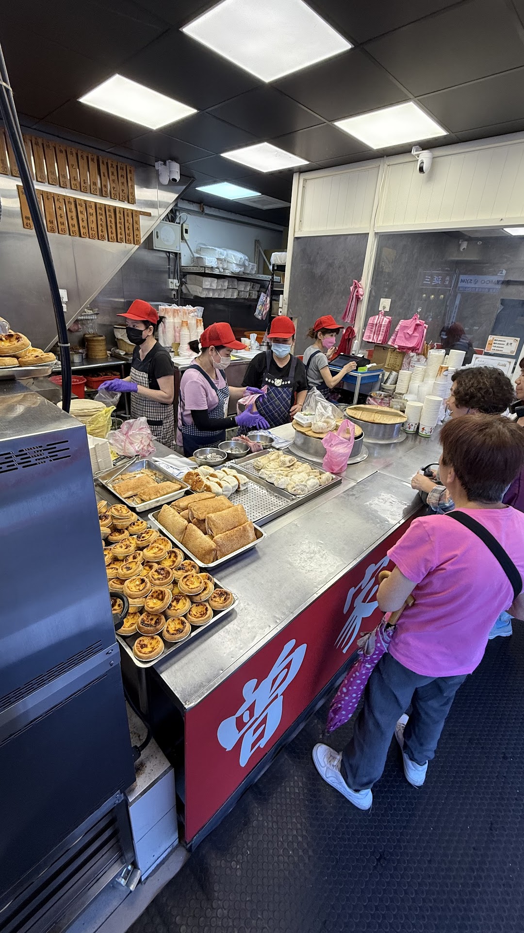 You can already see the line when walking up but the smells are what gets you definitely. The sizzling bubbling egg tarts coming fresh out of the oven, you can almost taste the flakiness and creamy egg tarts coming fresh. Fried doughnut (youtiao) is crunchy and nice, jianbing (kind of like a fried puff pastry with sesame seeds) is also very good especially the salad one(a little sweet from the peanut sauce but also savory/balanced out from the salad and jianbing itself. Egg tart was really good. Xiaolongbao was also very juicy and slurpable, add the sauce that comes with it and it’s very good