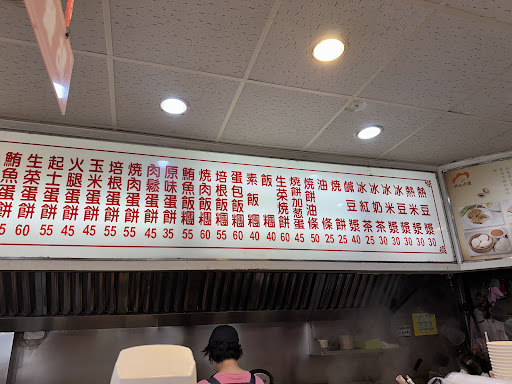 Read moreTaiwanese breakfast foods galore! This popular shop features 燒餅 (sesame flatbread) and 燒餅油條 (a variation stuffed with fried dough sticks). Its 韭菜盒子 (chive pocket pastries) and 蛋餅 (breakfast crepes with egg) number among nearly two dozen other tasty options. I recommend adding an egg to the sesame flatbread, to contrast with the crispy, flaky dough. Fresh soy milk is apparently ground from soybeans on-site.