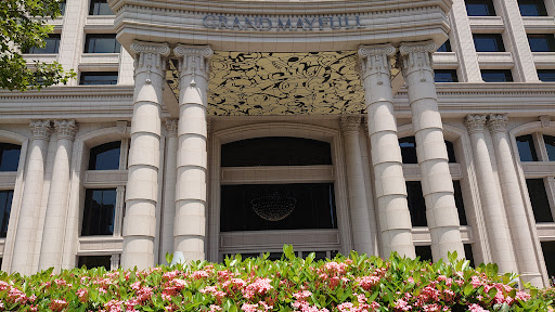 一進門雙眼就被華麗的裝潢牢牢抓住,左右雙邊設計迴旋梯直達二樓宴會廳,三層樓挑高設計,搭配華麗的水晶吊燈,大量花崗岩建材,高格調的藝術造景擺設,有濃厚的歐式古典風情,美得讓人佇足。不只有住宿,更有多家知名餐飲名店可供選擇。能於百億建造的華麗古典建物內享用美食,也是人生一大樂事。