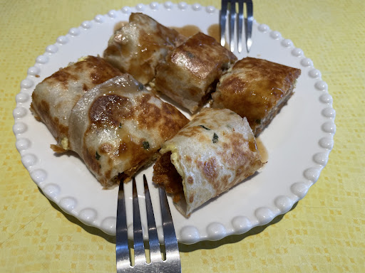 Listened to their advice and ordered chef speciality: 鲔鱼肉松蛋饼 and blown away! The tuna was not fishy. The amazing thing is the pork floss was so creamy! Note that I’m not a pork floss person to begin with. But pork floss elevated the whole dish! Not to mention the crepe is so crispy! So much texture happening! We tried a few other egg rolls such as German sausage (a little too dry) but none tasted as good as their signature!