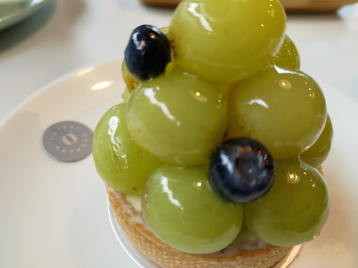the star attraction (as owner founded Orchard Cafe 3 years ago -- other location in Dongmen -- after a successful biz in desserts) is the eye-watering & better tasting dessert got the grapey one what i like is that the custard portion of tart is much cheesier / richer than average