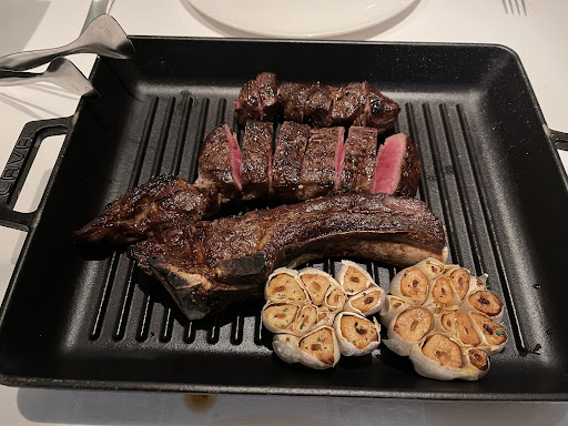 We ordered the 600g 30-day dry aged Australian wagyu bone-in ribeye, medium rare. When served, only about 2/3rds of the meat was from the proper ribeye cut. The remaining third was various fat and extra trimmings overcooked (well done) as individual strips and then arranged around the actual smaller ribeye. The ribeye tasted great, perfect medium rare, but the trimmings were just chewy jerky.