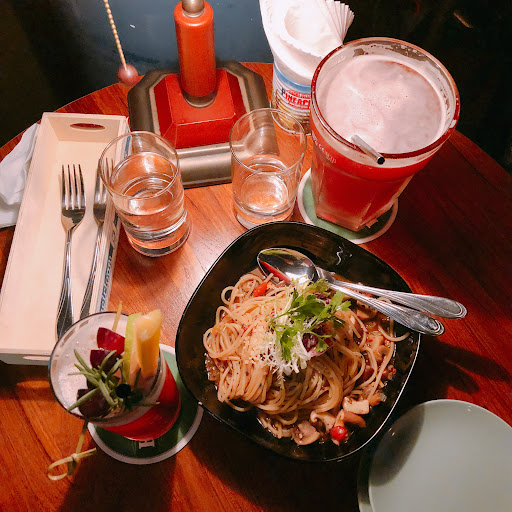 Easygoing restaurant with TVs & projectors serving international meals, cool cocktails & spirits.