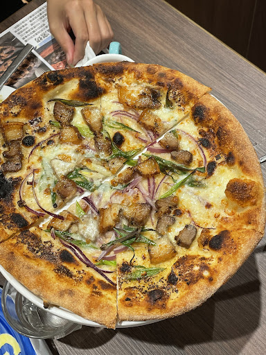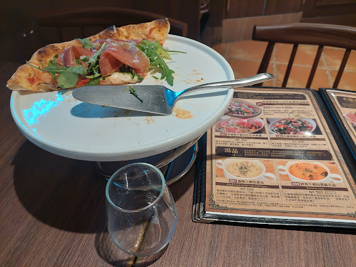 . very salty pizza ( it's the dough NOT ham, that is salty ! ) only provide 1 serving of shaved cheese, NOT Even if we request to pay for the Cheese. order a wine - lied that they do not have unopened bottle. Any order, they would need to open a fresh bottle. I had a sip & felt that spending more would give me a better experience so asked if i could purchase the whole bottle. To my surprised, staff replied that the glass I had was from an opened bottle, thus I would need to pay for additional new bottle. What an absurb reply.