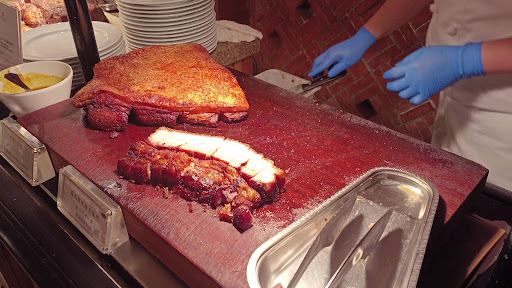 4.主菜區 三大主菜“燒烤肋眼牛排”、“爐烤大目鰱”、“羅馬風味脆皮燒肉”,絕對是視覺與味覺上的雙重饗宴。