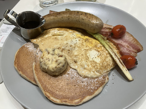 Read moreFlipper’s Brunch Plate ($420): It was such a hearty plate that included a sunny side egg, a currywurst, bacon and 2 pancakes with butter and maple syrup. Most of the bacon I had wasn’t very delicious, but this one tasted perfect. The currywurst was large and succulent. Furthermore, you could also make your sunny side egg over hard. After pouring some syrup and placing the sweet butter in the middle of 2 pancakes, it was literally the true definition of pancake. The pancakes had the superior taste and texture, and most importantly, the maple syrup was the best and most authentic part.