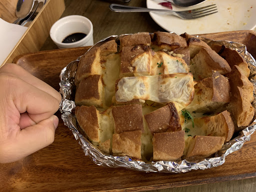 Garlic bread - even though placed under “starters section” this bread serves 4 comfortably. The outer layer had the perfect crunch followed by the warm spongy garlic butter center. Suggest to order a soup to go with this bread.