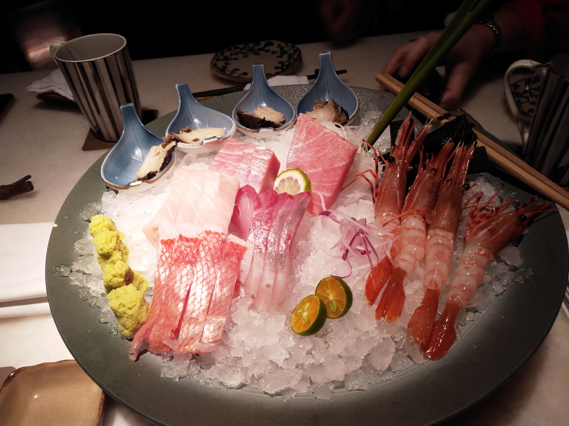 在三井, 生魚片吃完, 服務人員要把盤子收走時, 記得一定要跟服務人員說, 請把蝦頭拿去炸. N年前吃三井時, 服務人員都會主動詢問, 但是現在都不會了, 所以一定要主動自己跟他們說. 炸得酥酥的蝦頭很好吃喔, 不吃可惜.
