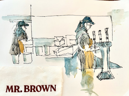Read moreUrban citizen sketches at renewed Mr. Brown in Nanjing E.Rd Silk gel pen 0.4mm and Rembrandt watercolor on pocket sketchbook