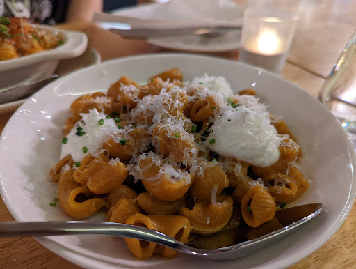Read moreUPDATE: 12/2023 This place used to be amazing! Unfortunately this is no longer true and this is a sad development. The pastas are more expensive and of poorer quality. The pasta sauces are thin and not even close to as flavorful as they used to be. The pastas themselves are not particularly unique like they used to be. The salad was mostly leaves and lettuce at that. The deep fried squid I ordered was over cooked and rubbery and I had to return it as it was inedible. The service is still excellent though, but unfortunately that's not enough reason to keep going back. It's sad, since we went here pretty regularly and it was one of our favorite places to eat at. I found out about the Pasta and Co pop up at Take Five on its very last day and I managed to get a table and had 3 of the pastas they had on offer - the pumpkin nduja rigatoni, the sundried tomato one and the pesto with pistachios. All 3 of them were excellent, amazingly flavorful and very creative. So when they opened their own restaurant last week, I couldn't wait to go back. We went for dinner tonight and once again ordered 3 pastas! Obviously that's one pasta too many, but they were so delicious, I can't complain. My belly though isn't as pleased at being stuffed past capacity. We got our favorite from the pop up which was the pumpkin nduja and it did not disappoint and we had the very unique Kung Pao sorrentina and the sourdough biggoli. The Kung Pao sorrentina was so good! Like I mentioned before, it's very unique and I loved the combination of flavors. The peanuts on top brought a layer of texture to the dish that made it just perfect. I don't think I'll order the sourdough biggoli again. It was tasty and I love that they are experimenting and trying new things but I'm not sure if the burrata being deepfried added anything to the dish and I feel like their other pasta offerings are just so much more delicious, that while the biggoli was good, they have better pastas to offer. We got the limoncello tart and "fried chicken" eclair. And they were great and a perfect finish to the meal. The staff were lovely and the service was...