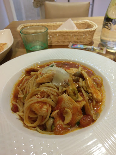 Read moreThis was my first time at this Italian restaurant. I've seen long lines of customers during the day, but after 2:00, 80% of the tables were filled. I ordered chicken tomato spaghetti and sweet potato soup. The soup comes with a bread stick, which differentiates it from other dishes. After the meal, you can choose one dessert, and I ordered mango sorbet. There are 24 tables on the first floor. There seems to be some in the basement too. I can tell that this restaurant attracts a lot of customers. There is no Tabasco, but there is powdered Tabasco, so it is spicy, but it is my first time trying it. The spaghetti is a little on the hard side, al dente, and the taste is a little sweet, not the usual spicy taste. It's not bad! The bread sticks made me feel quite full, so I felt full while eating the spaghetti. Next time, I'll use the bread sticks in moderation. The clientele is mostly housewives, and lunch meeting customers. The service is good, and the satisfaction level is high. The conversations of the spoiled housewives were loud and noisy. I need some kind of rule for other customers in the future! Please, owner, please consider the future of Taiwan with the increasing number of tourists and business travelers...