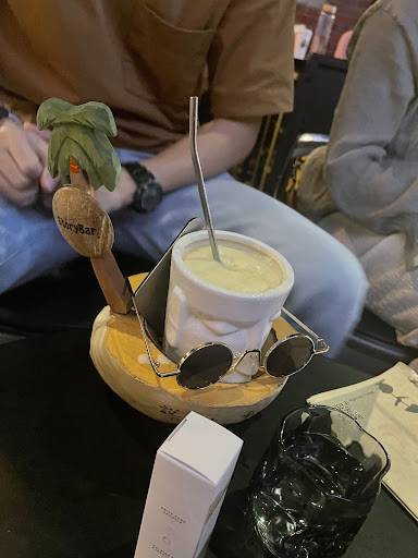 店名叫說故事,我來說說來這間店的故事,某天晚上跟朋友聚會聊天,剛開始一位戴眼鏡女店員來介紹,還算親切,跟我們說人比較多位子要稍等一下幫我們換桌,這很ok,坐上位子後,看了菜單,一位女店員「很簡單」的講了一下菜單後就離開沒有提到要收服務費1成,點完餐後,因為我當天沒吃晚餐其實很餓,足足等了半小時,第一盤炸物才端上來,品質呢,大概就跟外面冷凍買回來自己炸的東西差不多,我就不懂了,炸東西要這麼久嗎?我還有點了杯『自在觀拿鐵』喝起來,一點都沒有茶香,應該有加一些奶精的感覺,賣140,ok反正酒吧本來就比較貴…但就喝起來普普,後續慢慢食物、酒水上齊,擺盤是滿有特色,很多可愛公仔增添氣氛,但酒喝起來,可能不合我胃口,一杯賣到400多含一成快500,只能說滿失望這品質,食物部分,【非常極力不推薦『小亂串』,因為真的是亂串】一盤275含服務費,只有短短四串,香菇、百葉豆腐、羊肉串、雞心,沒了,而且份量超少,傻眼了,一看到真的想罵髒話,我外面買都不用60,的份量,然後什麼『轟炸機198塊』端出來是外面的鹹酥雞,一開始還有問店員是炸雞嗎?店員說對,還以為是稍微大塊的那種美式炸雞,根本盤子在吃,當晚剛好店裡直播奧運羽球,想說算了,來看看奧運,結果明明沒什麼客人在店裡了,店員還可以很白目的直接擋在我們前面聊天、炮妹,我看賽體驗一直被打斷,後來貌似來了像是老闆的人,進來後不知道他在生什麼氣,把店員叫過來,就在『吧檯』前面罵人,欸欸大哥,客人叫在你們旁邊欸,請你要罵去廚房罵,有夠傻眼,然後當天的那個「黃頭髮吧檯哥」請你好好做好你調酒的工作,你老闆不在,就撩妹,罵同事,一直聽到你說什麼爛欸、很爛什麼的,我聽了很煩。
