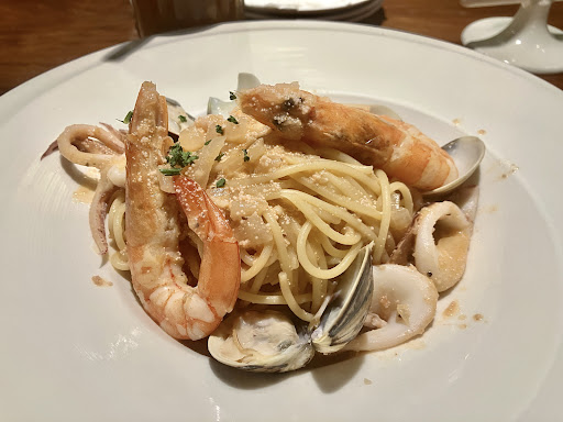 The pasta was dried spaghetti. I'm a little disappointed that and upscale Italian place like this doesn't make their own. The scallops and salmon were both overcooked, but surprising the shrimp was about right. The sauce was delicious, partially because the smoked salmon flavor seeps into the sauce, but it really saved the dish.