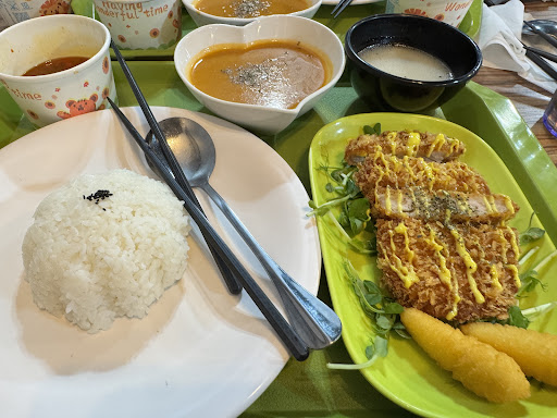 Read moreWent here last saturday. Service was great, foods taste really bad. The pig donut ring was tasted like flour. The other menu & also the curry, mustard was just bad as it could possibly be. I'd prefer go to Mcd even they have free flows here. There's student price, each person have to order 1 menu, cannot share, 100NTD/person additional charge for those who don't order. Free flows: -2 choice of drinks (lime water & idk what's the tea name, both taste like leftovers drink which added with water) -3 sauces or soup (?): curry, duck blood soup, somewhat like lumpy chicken soup (which one of us said it was one of Japanese miso soup base taste) -Salad bar (seaweed, kimchi,...