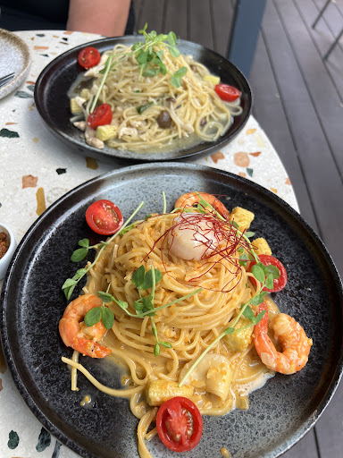 We ordered 1 pasta and 1 risotto combo A for our main. They are well cooked (pasta is perfectly al Dente ) and very flavorful. The portion is definitely a lot for 2. Their truffle fries were very fresh. The fries are very thick and the portion is a lot for two.