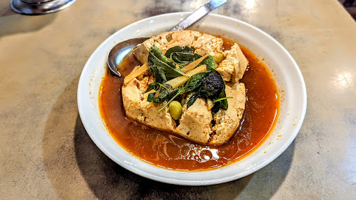 Read moreVegan, steamed stinky-tofu that's generous in portion and worth the wait. Delicious and inexpensive at NT$70 for two full-sized pieces in spicy broth of your choice (super spicy, hot, medium, less hot, mild, or no spice), topped with mini shiitake mushrooms, edemame, and julienne ginger.